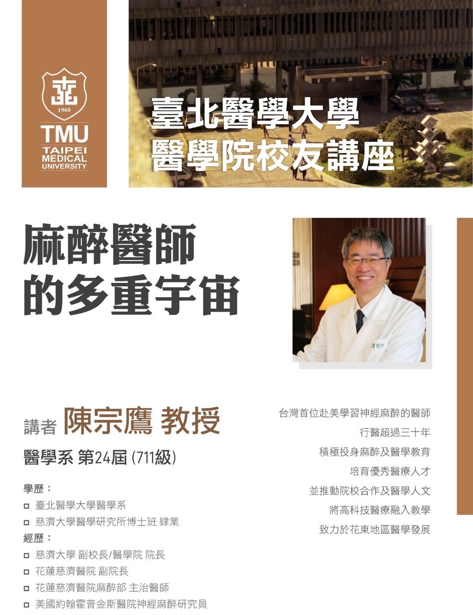 陳宗鷹教授(臺北醫學大學 醫學系 第24屆) -- 麻醉醫師的多重宇宙